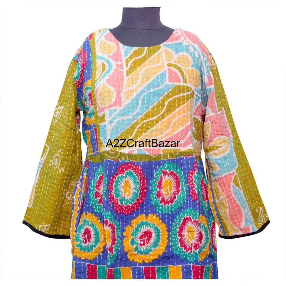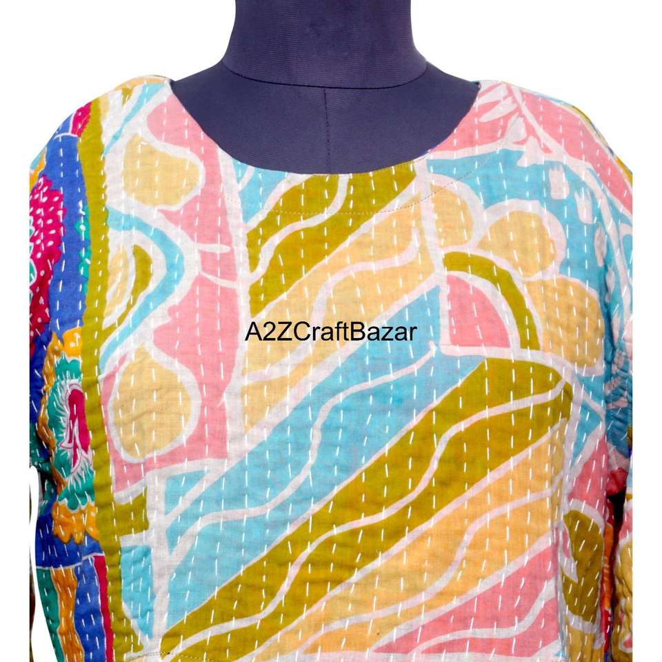 New Arrival Wholesale Vintage 100% Pure Cotton Kaftan Maxi Dress Beachwear Kantha Long Dress Gown For Women And Girls