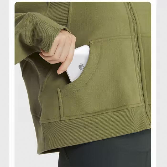 New Arrival Winter Brushed Fleece Material Breathable Gym Sportswear Long Sleeve Running Yoga Crop Hoodie Womens
