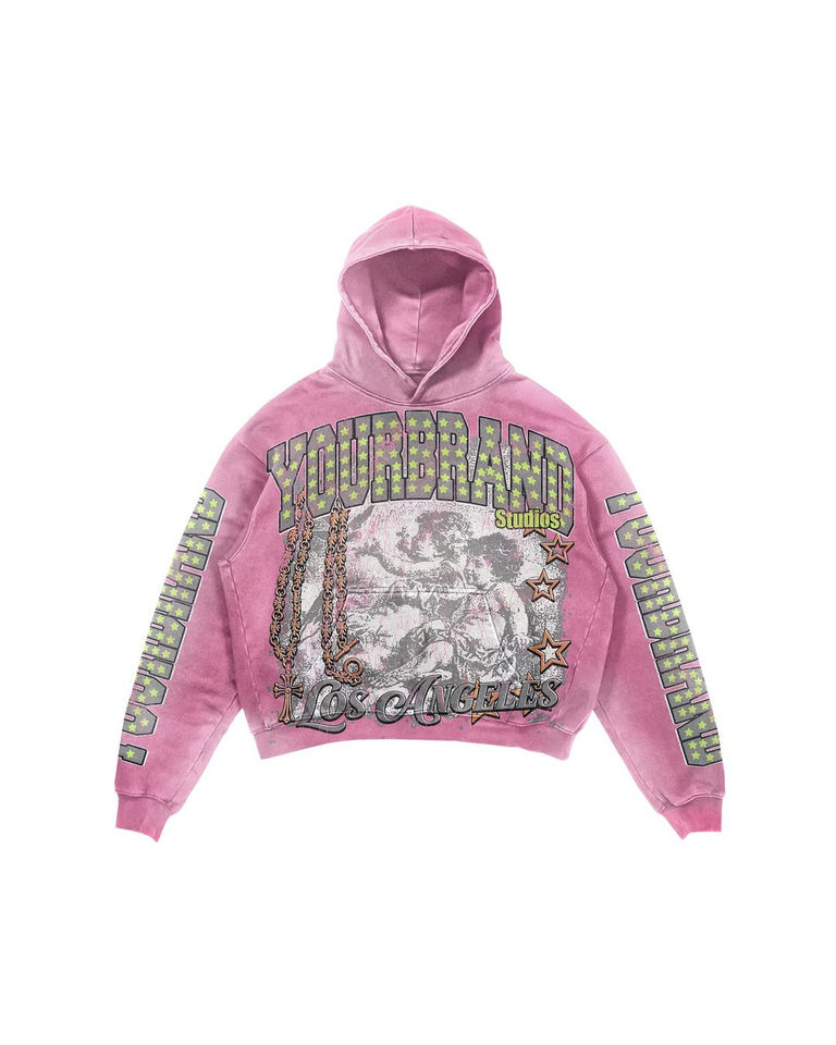 New Arrival Winter Light Pink Acid Wash Flared Hoodie Pant Printed Letters Rhinestone Outline Eco-Friendly Anti-Bacterial 100%