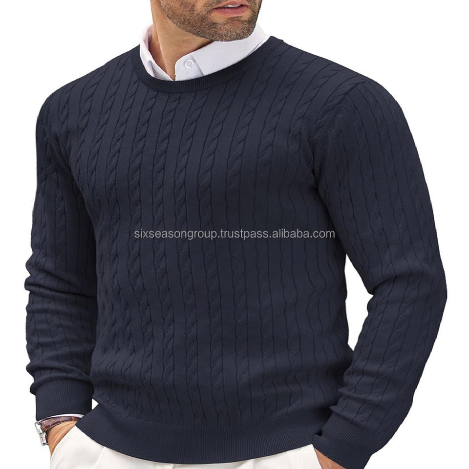 Craftland® Autumn Winter Navy Marine Sweater Hand Knitted Cashmere Anti-Wrinkle Anti-Shrink Feature Plus Size Pattern Decorated