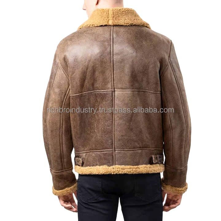 New Arrival Winter Warm Long Sleeve Men Shearling Leather Jacket OEM Factory Made Lightweight Men Shearling Leather Jackets