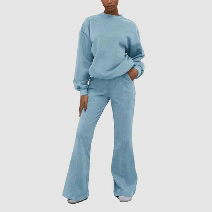 New Arrival Women Custom 2-Piece for Lounge Wear Set Plain casual O-Neck Pullover and Flared Sweatpants & sweatshirts sets