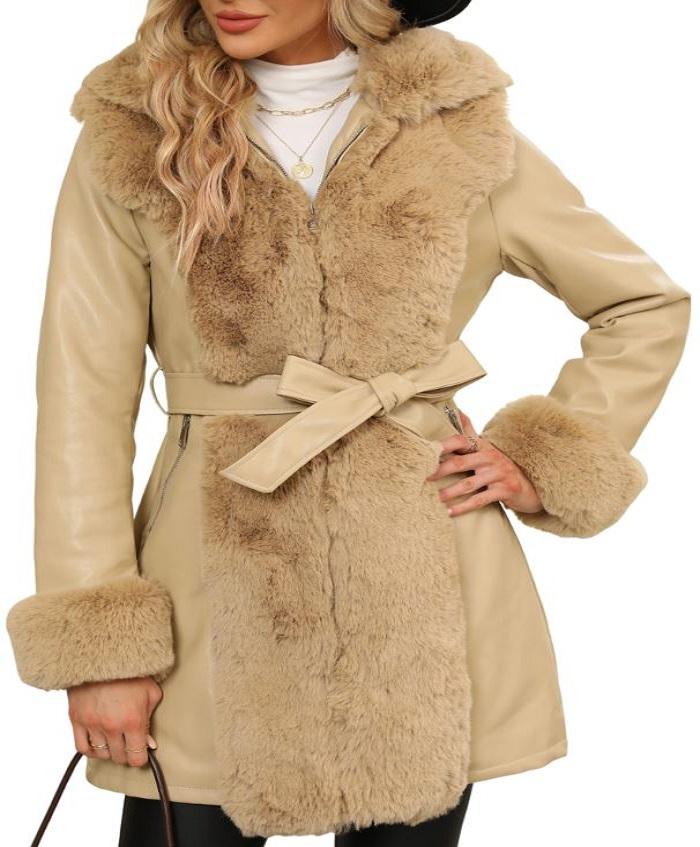 New Arrival Women Fox Fur Leather Suede Bellivera Jacket Coat Sherpa Lined Overcoat with Genuine Leather Sheepskin Jacket