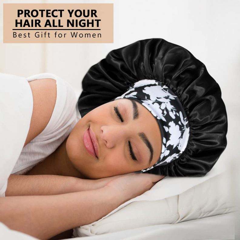 New Arrival Women Night Caps With Patterns Printed Wide Band Medium Size Satin Hair Bonnets
