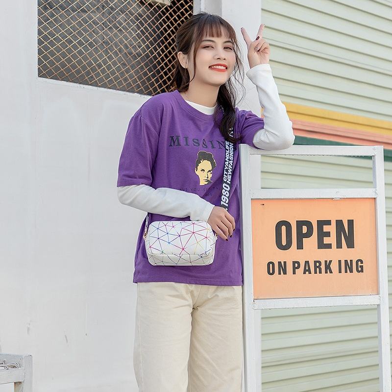 New Arrival Women's Autumn Fashionable Geometric Print PU Material Messenger Shoulder Bag Camera Strap Colorful Letter Design