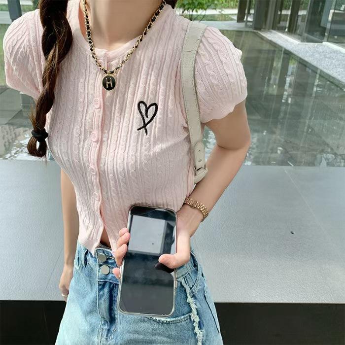 New Arrival Women's Daily Lover Pattern Short Sleeve Sweater Solid Color Casual Button Coats Breathable and Thin Cardigan