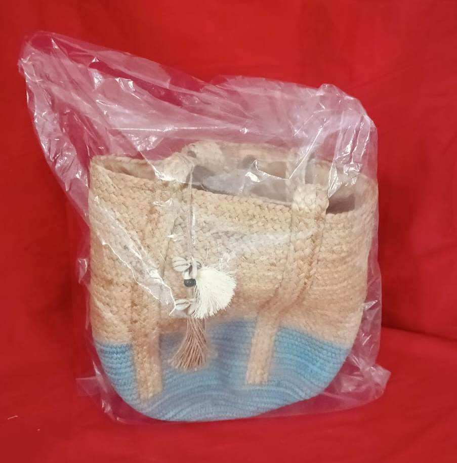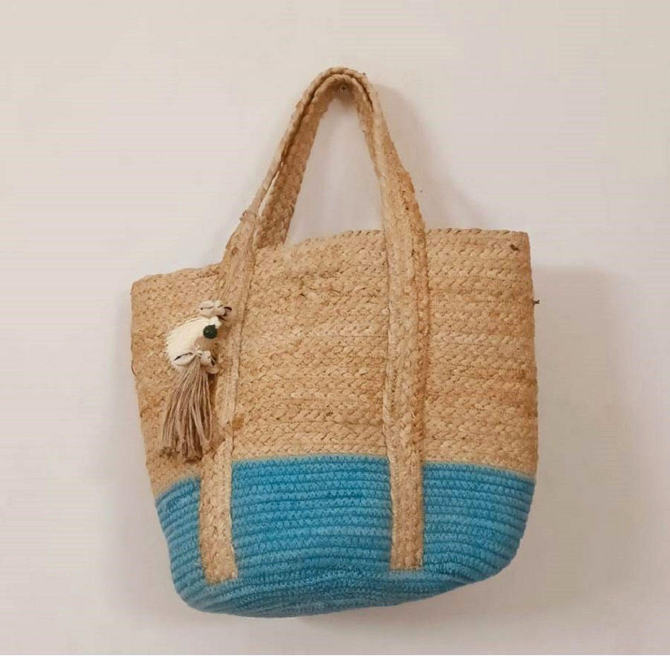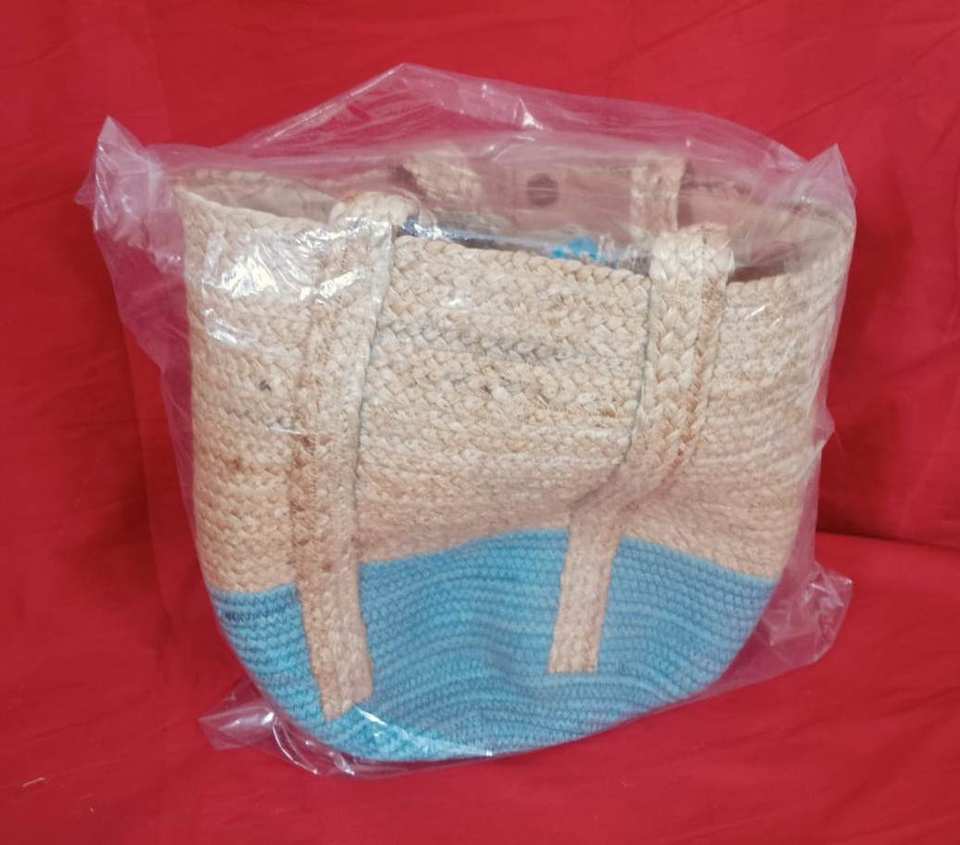 New Arrival Women's Eco-Friendly 100% Jute Fabric Sling Bags Braided Beach Totes with Printed Lace Shoulder Carry Accessory
