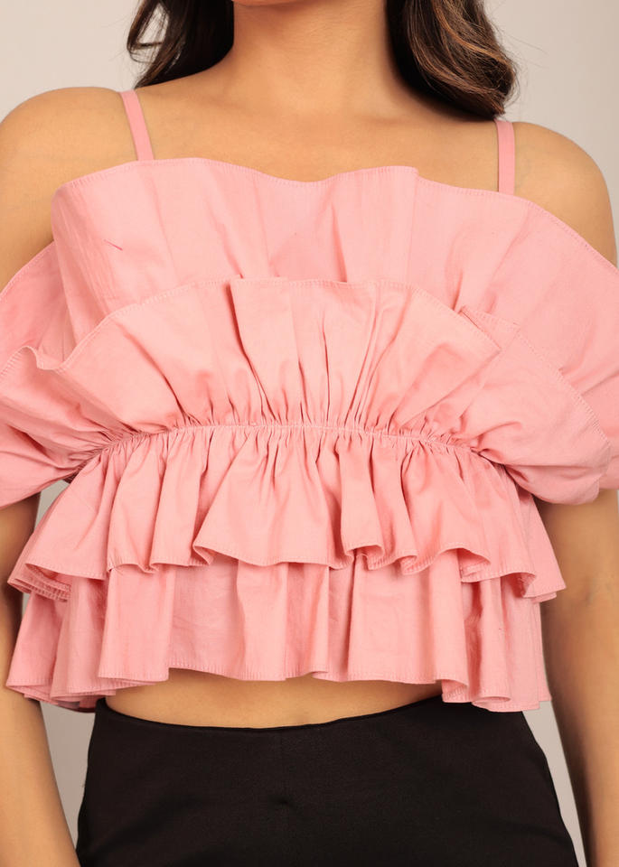 Product Name:Pink Solid Sleeve Less Summer Crop Top