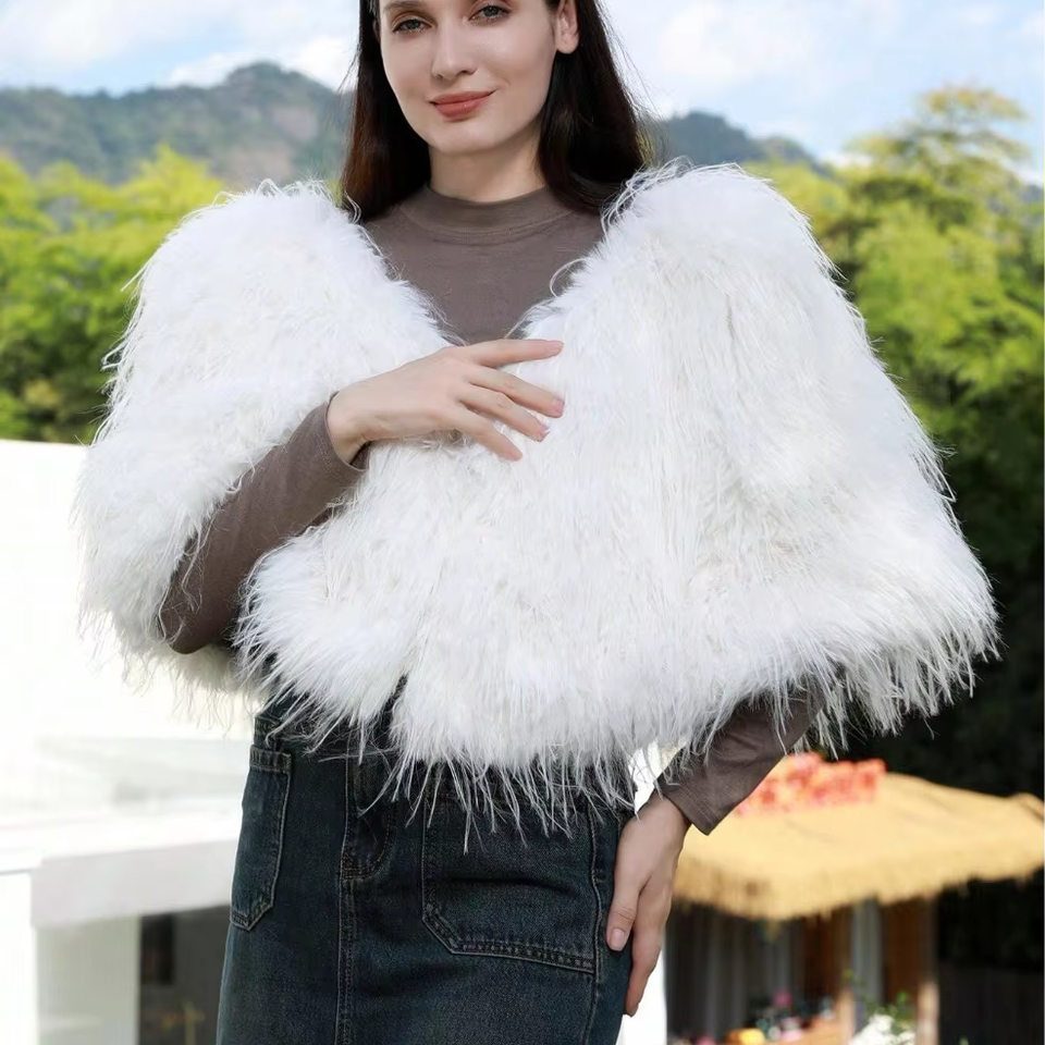 New Arrival Women's Fur Faux Winter Bolero Wedding Cape Stock Evening Party Short Loose Poncho Style Bridal Shawl Coat for Lady