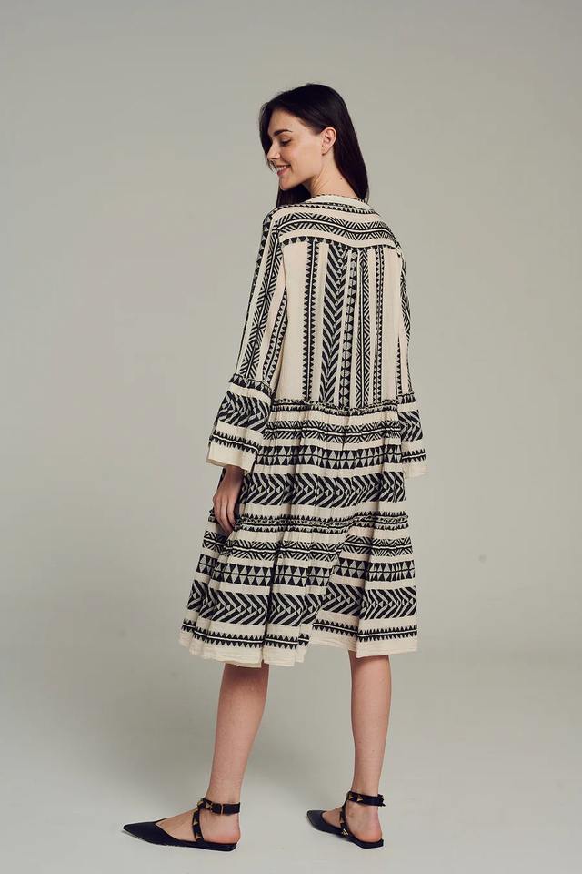 New Arrival Women's Handmade One-Piece Short Tunic Dress V-Neck Textured Breathable Lightweight Viscose/Cotton for Summer