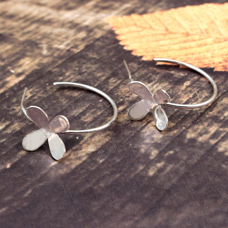 Silver Plated Flower Hoop Earrings