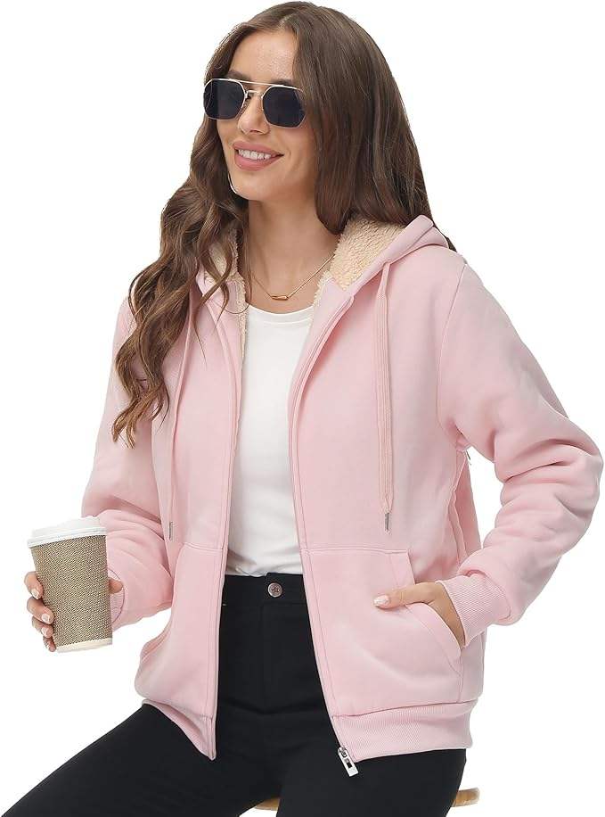 Product Name:Women's Hoodie Sherpa Lined Full ZipUp