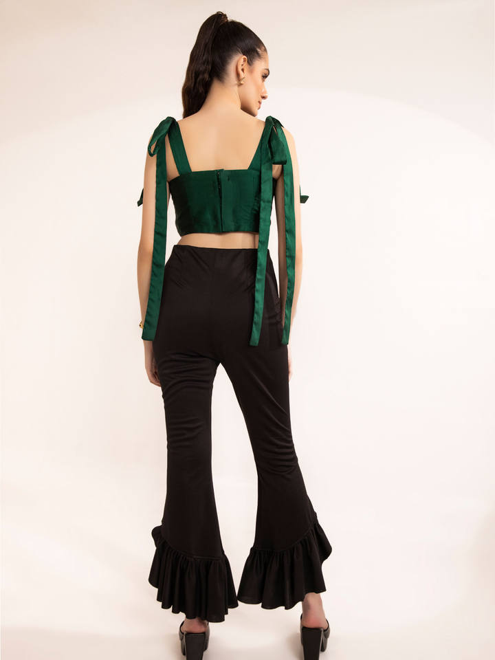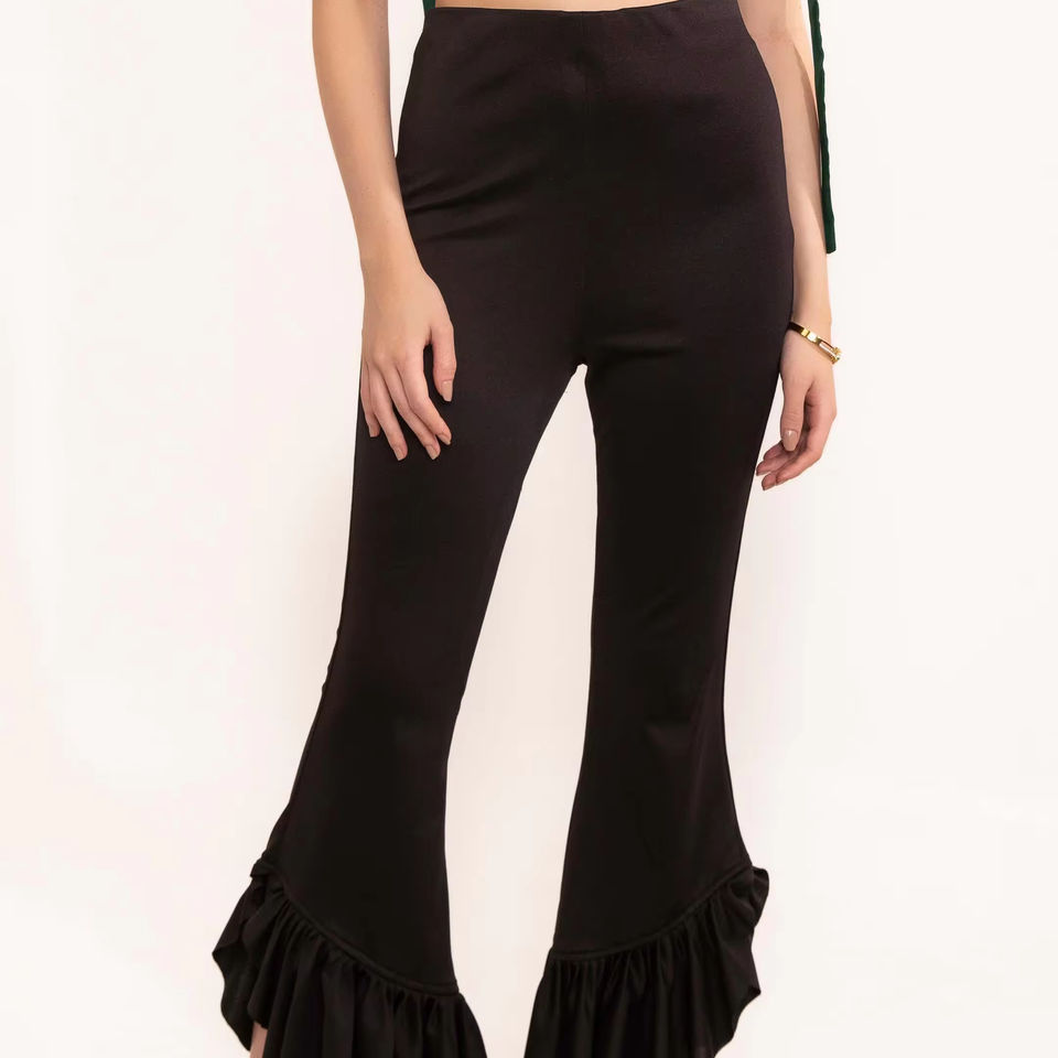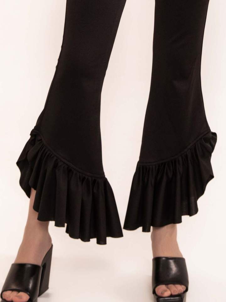 Product Name:Black beauty ruffled hem high waisted pants