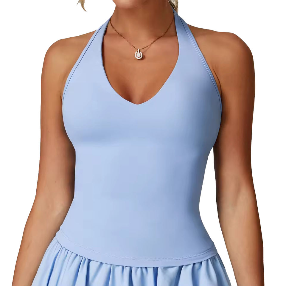 New Arrival Women's Sports One-Piece Tennis Wear Halter-Backless Fitness Yoga Skirt Outdoor Running Tape Fashionable Sports Tops