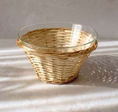 Handmade Rattan & Glass Salad Serving Bowl 100% Food Safe for Party-Chocolate & Dessert Serving