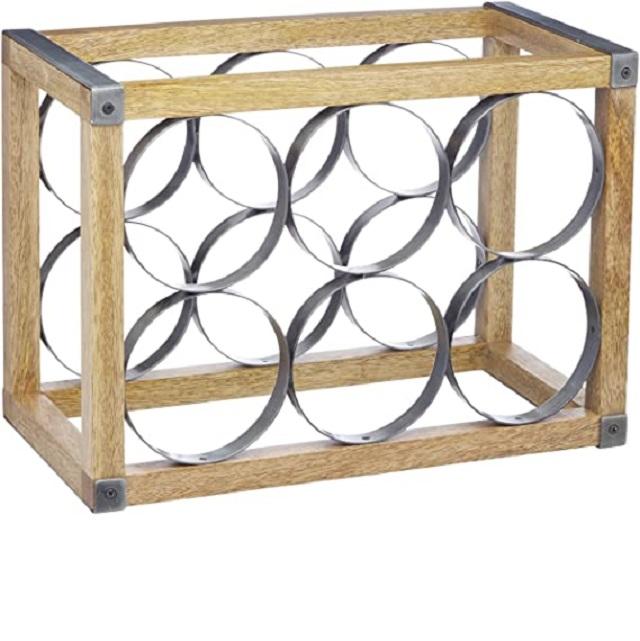 New Arrival Wood Metal Industrial Kitchen Vintage-Style 6-Bottle Storage Rack Wedding Party Soft Drink Storage Shelves