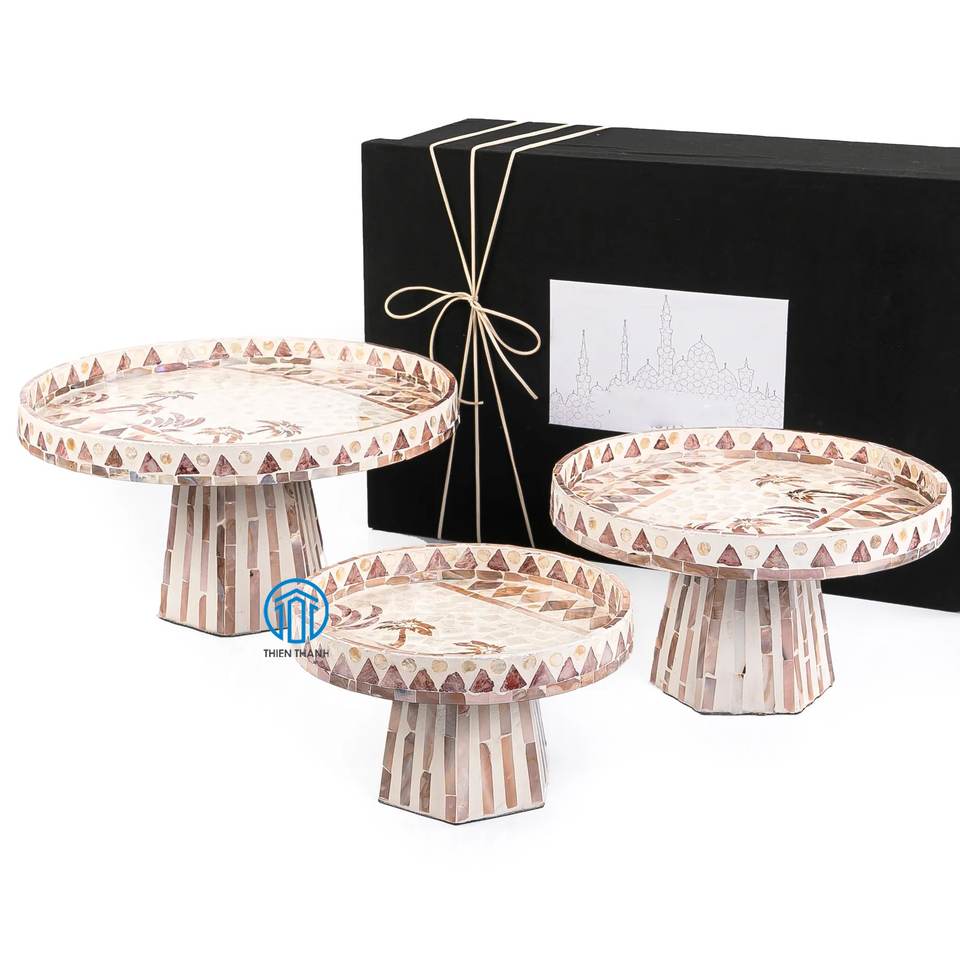 New Arrival with Beautiful Design Mother of Pearl Set of 3 Cake Stands with Multi-function for Decoration & Using Wedding Party
