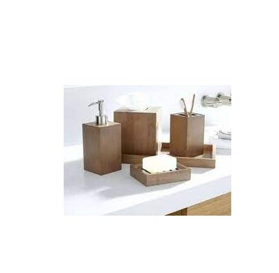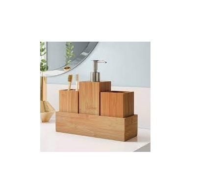New Arrivals 4 Pcs Wood Bathroom Set Wooden Accessories Set with Natural and White Color with Natural mango Wood Color