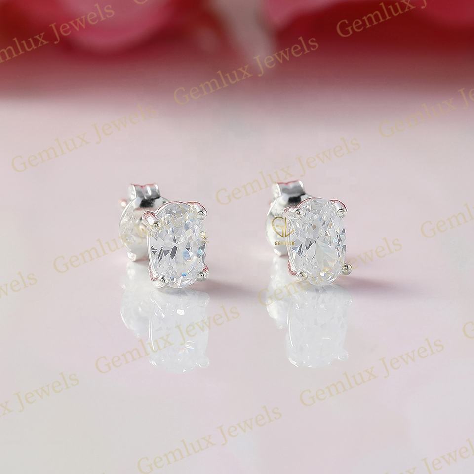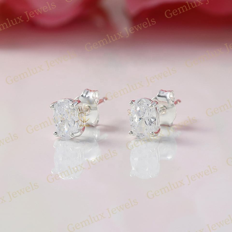 New Arrivals 935 Silver Oval Cut Diamond Simulated Diamond Daily Wear Luxury Wear Stud Earrings