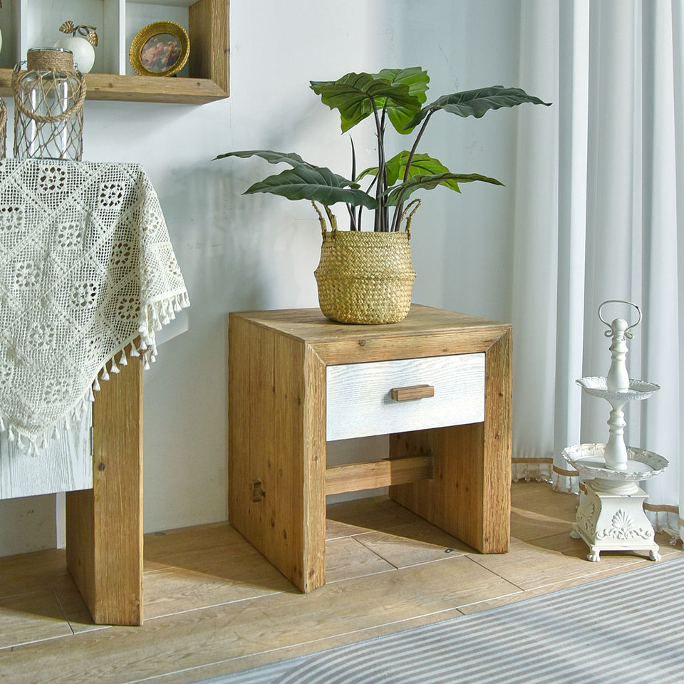 New Arrivals ART NEST French Accent Farmhouse Furniture Rustic Solid Wood Handmade Bedside Nightstand Small Drawer for Bedroom