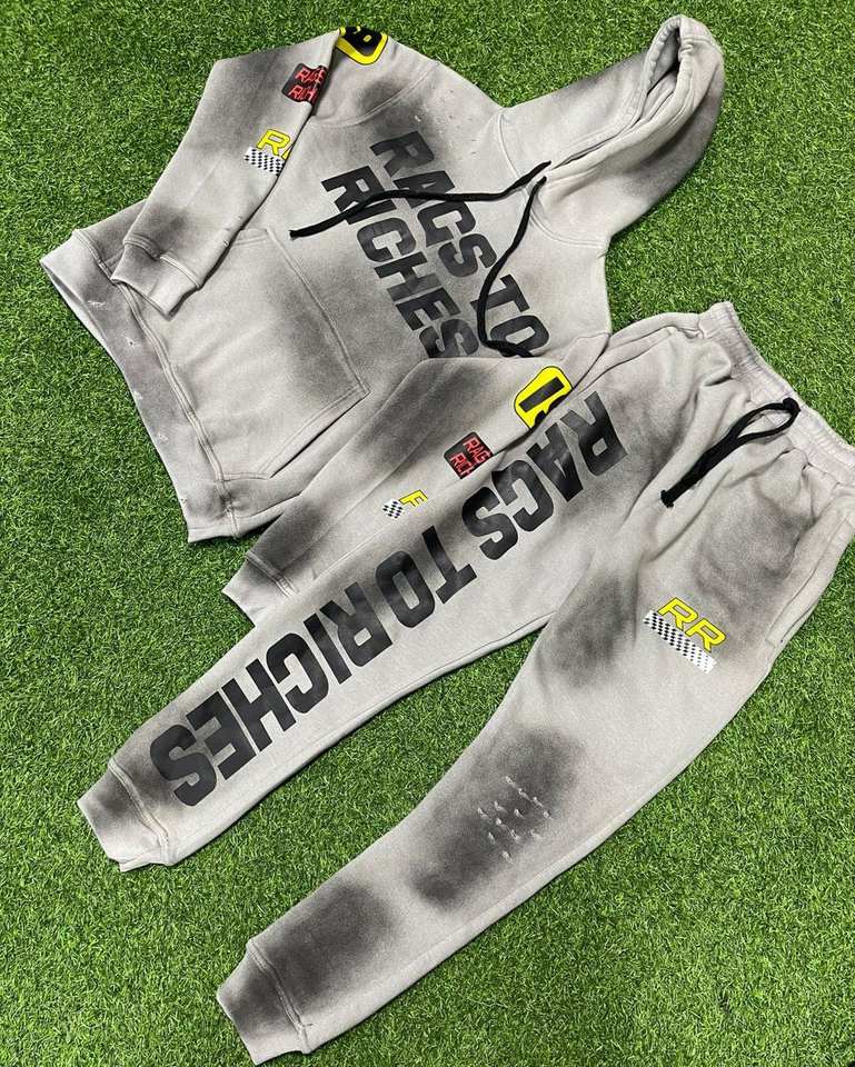 New Arrivals Custom Puff Printing Fleece Straight Legs Casual Plus Size Men's Hoodie Sets Autumn & Winter Sweatsuits for Men