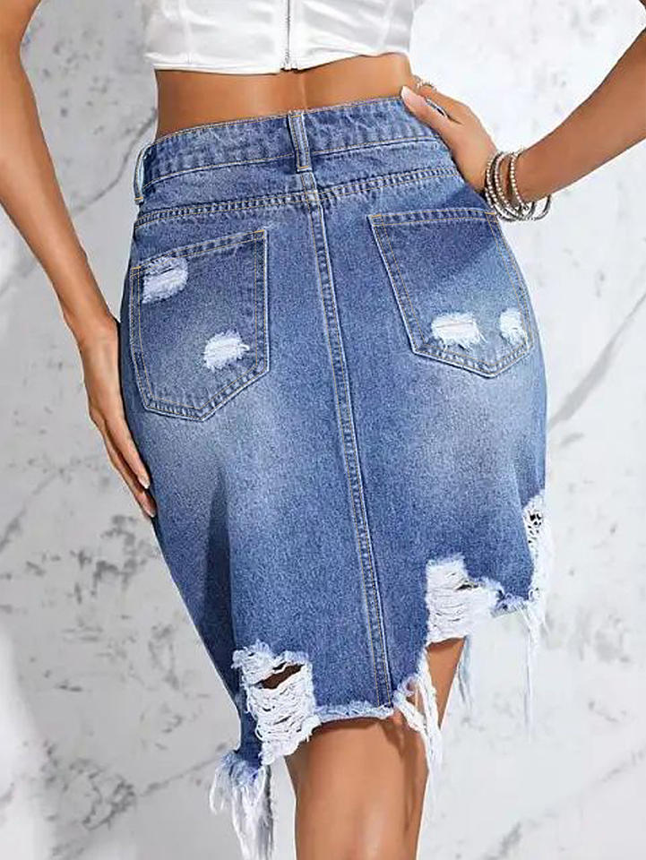 New Arrivals Custom Women's Straight Summer Denim Ripped Skirt Logo Zipper Button Pockets Solid Pattern Y2K Style for Spring