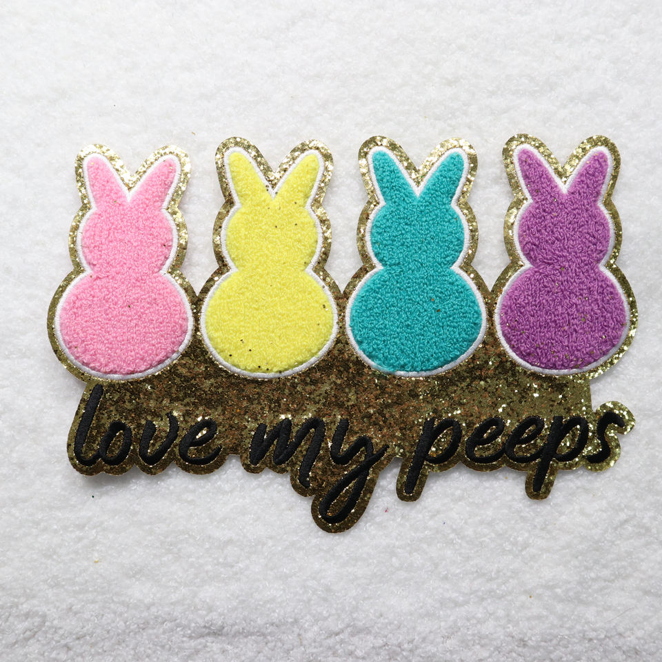 New Arrivals Customizable Pink Iron on Shirt Patches Mama Bunny Easter Chenille Patches for Clothing