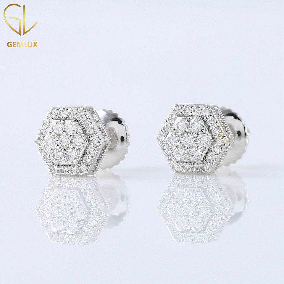 New Arrivals Daily Wear Pass Diamond Tester Hexagon Shape Round Cut Lab Grown Diamond Screw Back Stud Earrings For Men Women