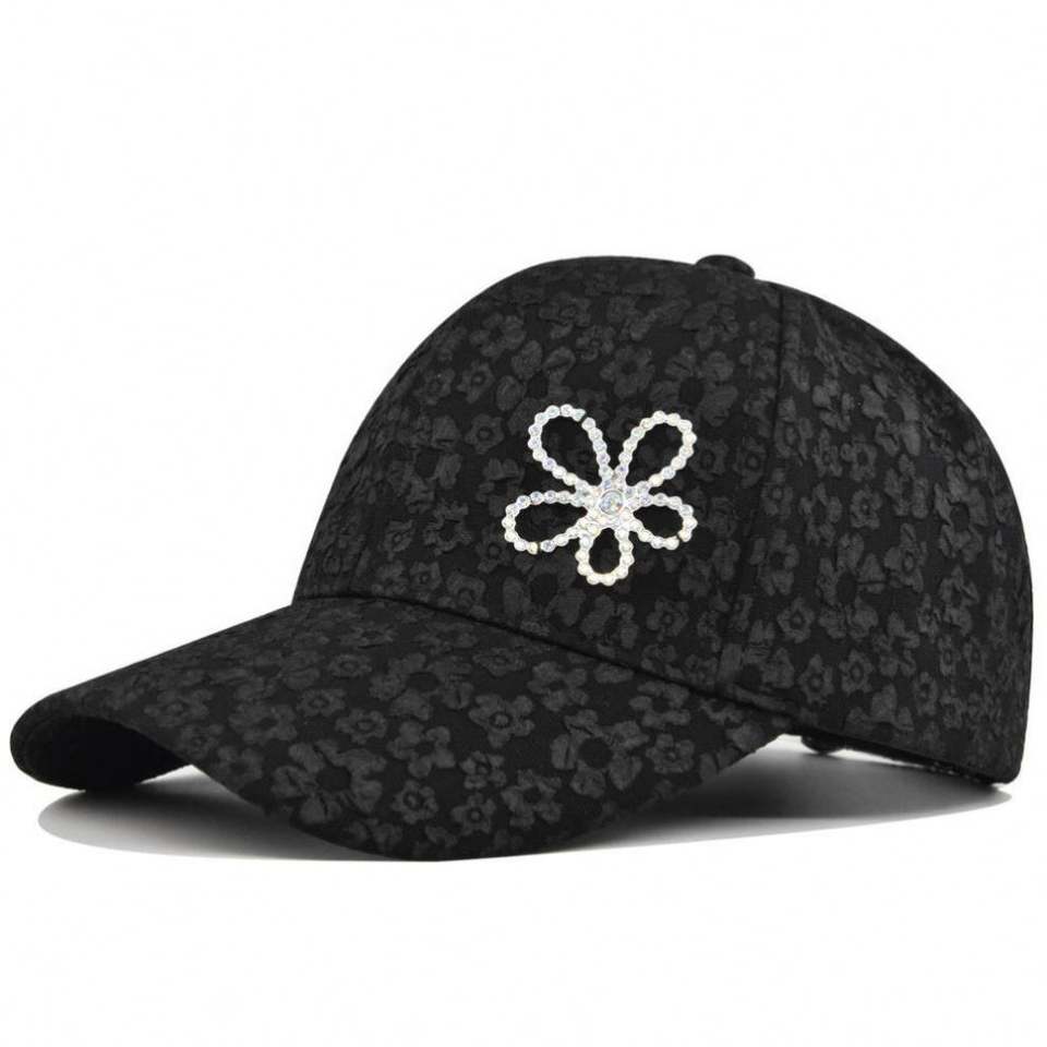 New Arrivals Fashion Sports Hats Womens Customized Baseball Capgorras Mesh Floral Lace Baseball Cap Hat With Rhinestone