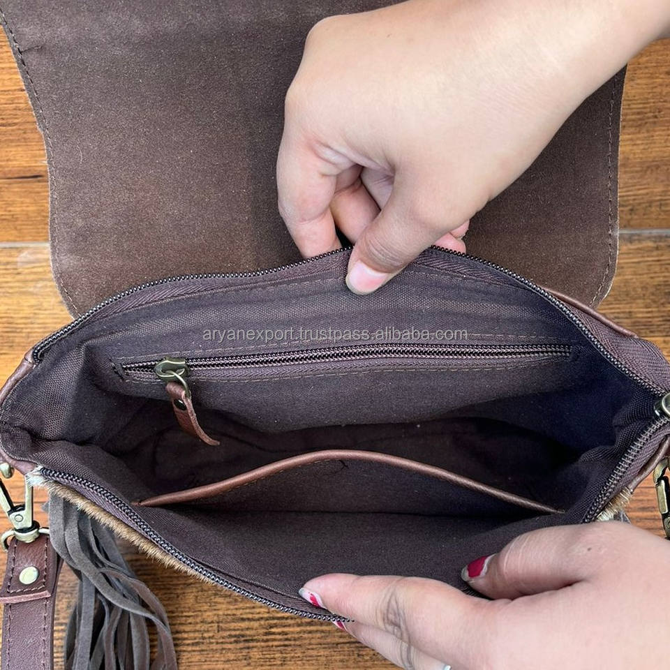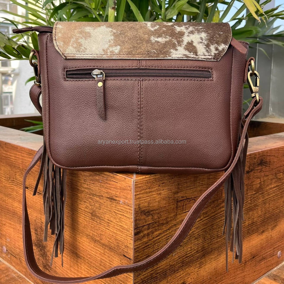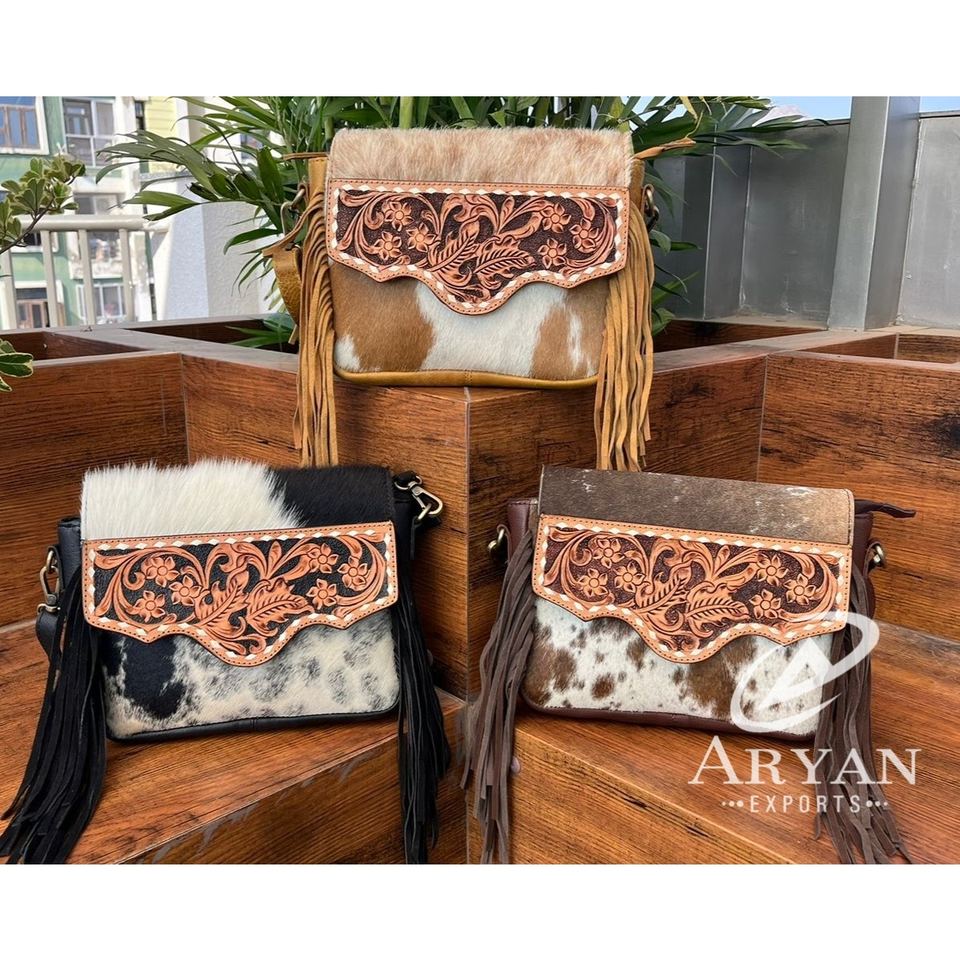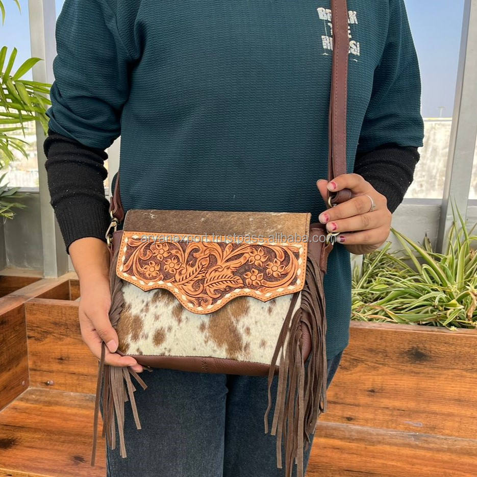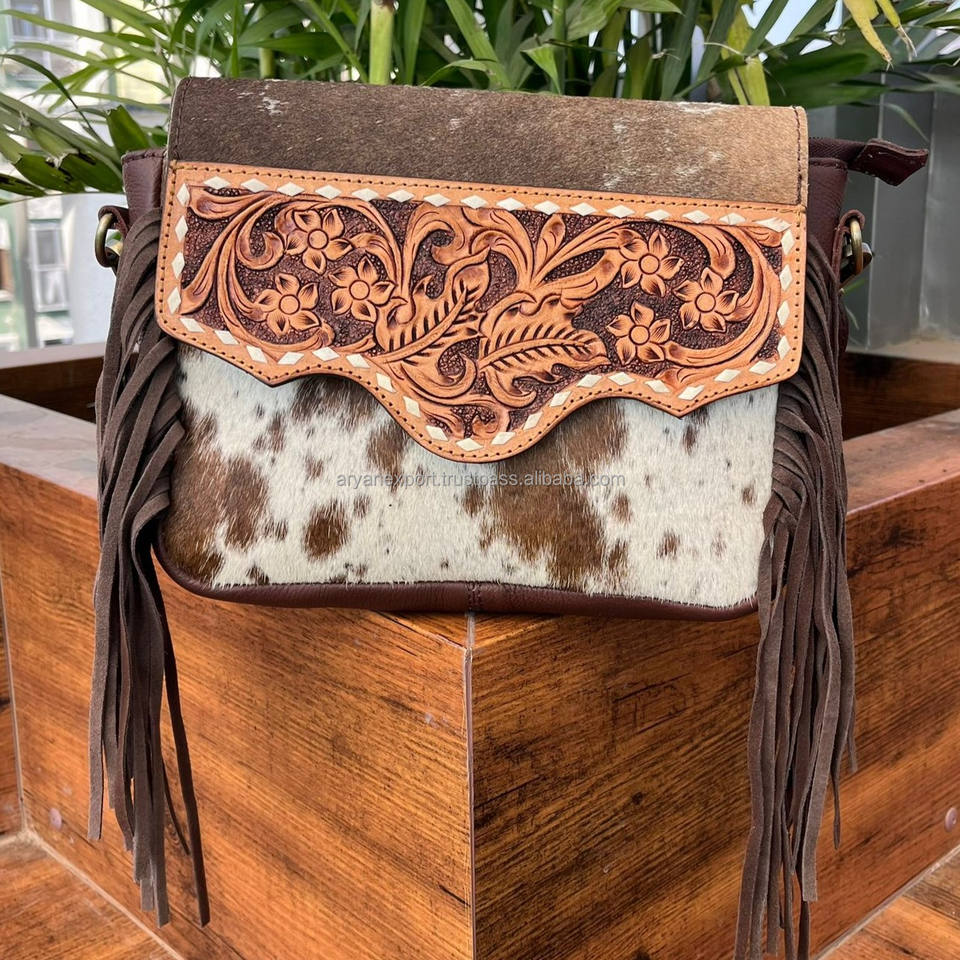 Product Name:Hand Tooled Cowhide Crossbody Fringe Bag