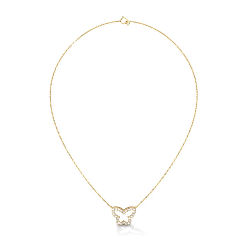 New Arrivals Fine Jewelry Necklace 14K Gold Butterfly Cutout Pendant Necklace Choker Necklace