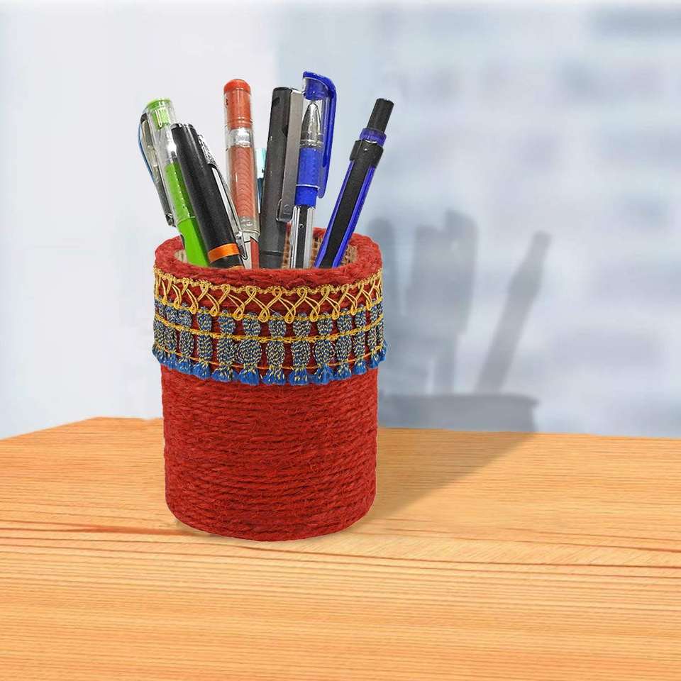 Modern Style Jute Wood Pen Pencil Holder Durable Square Design New Arrival Desk Organizer for Office & School Table Wholesale