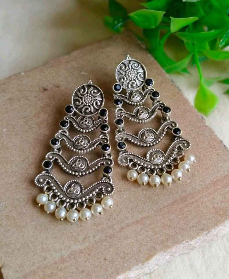 New Arrivals Monalisa Stone Drop Earring Silver Color With Drop Pearl Earrings Light Weight Indian Jewellery Wholesale Accessory