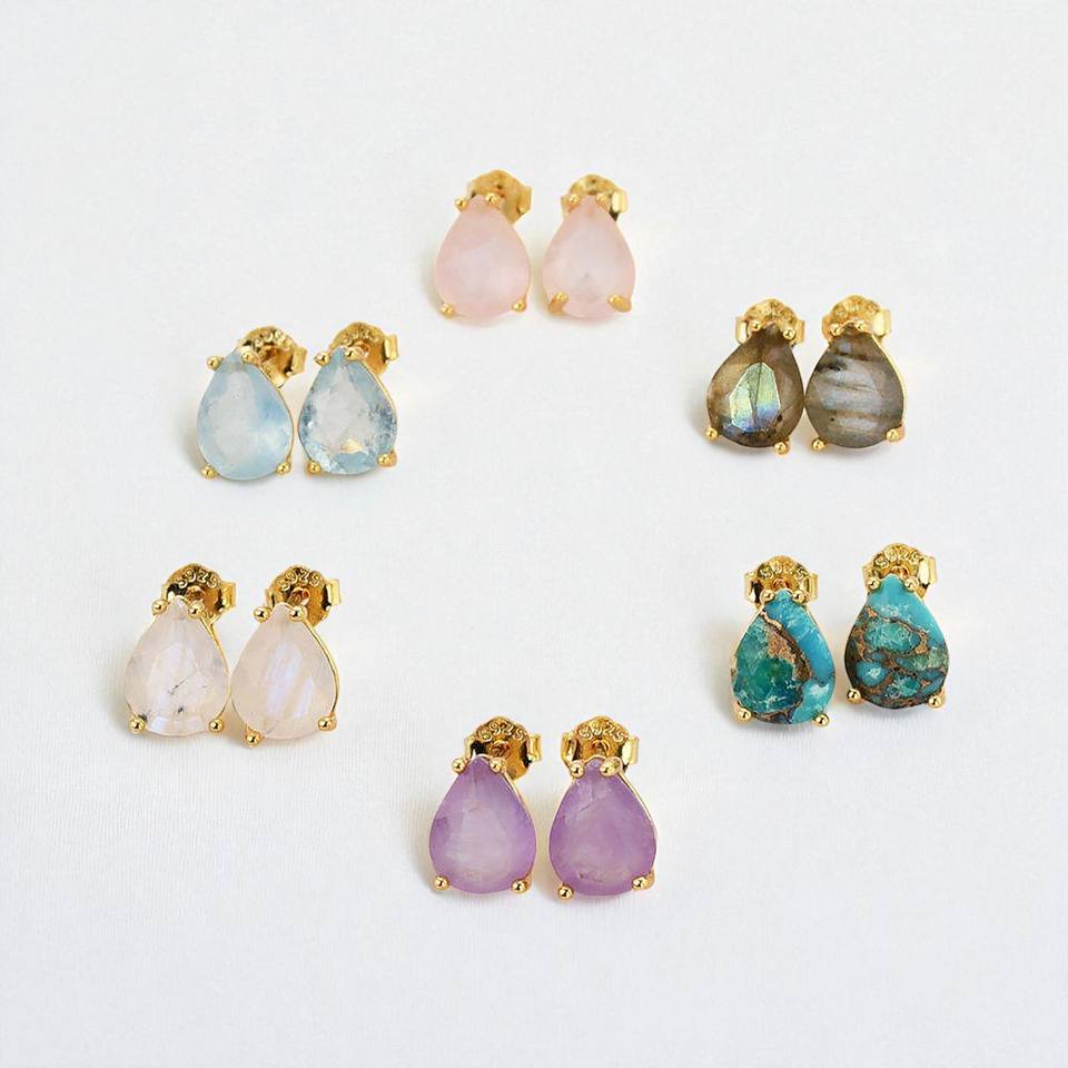New Arrivals Natural Gemstone Pear Shape Prong Set Sterling Silver Studs Earrings Jewelry
