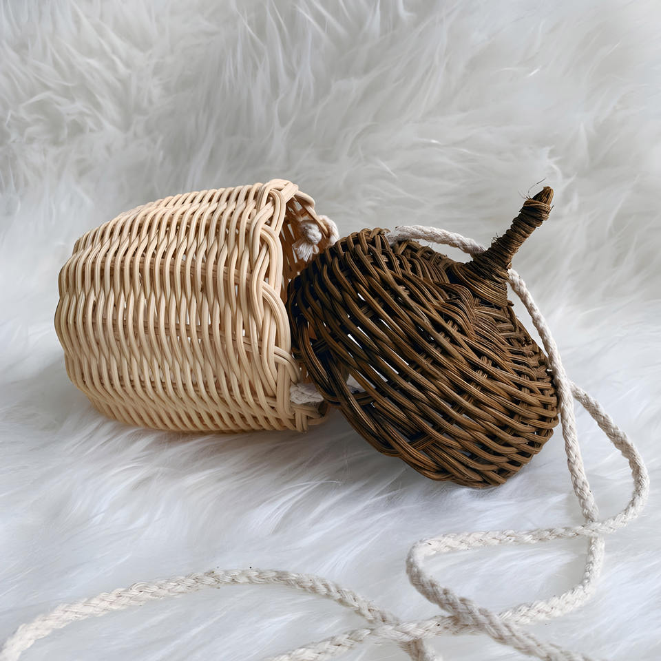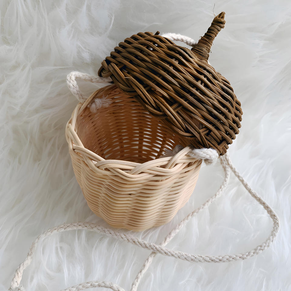 New Arrivals Outing Children Bags Rattan Acorn Cute Shoulder Handbags Kids Crossbody Summer Playful Bag