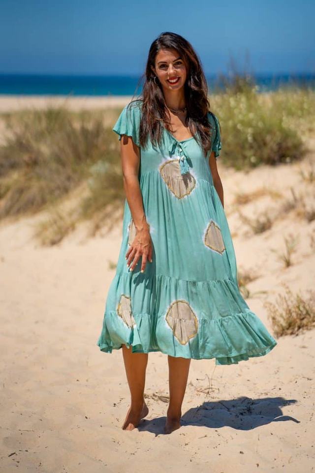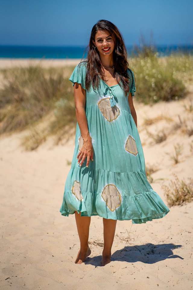 New Arrivals Stylish Indian Handmade Tie Dye Ruffle Sleeve Floor-Length Women Plus Size Party Boho Style Washable 100% Cotton