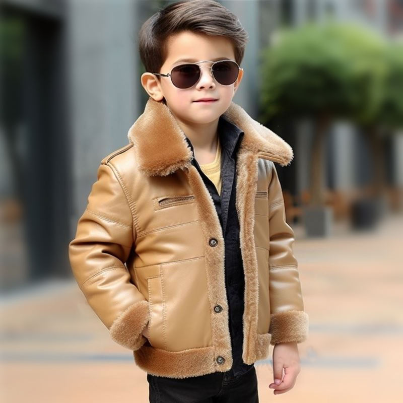 New Arrivals Thick Coat Denim Jacket With Fur Collar Kids Faux Fur Jacket Winter Boys Leather Jackets for Kids Fur Fleece