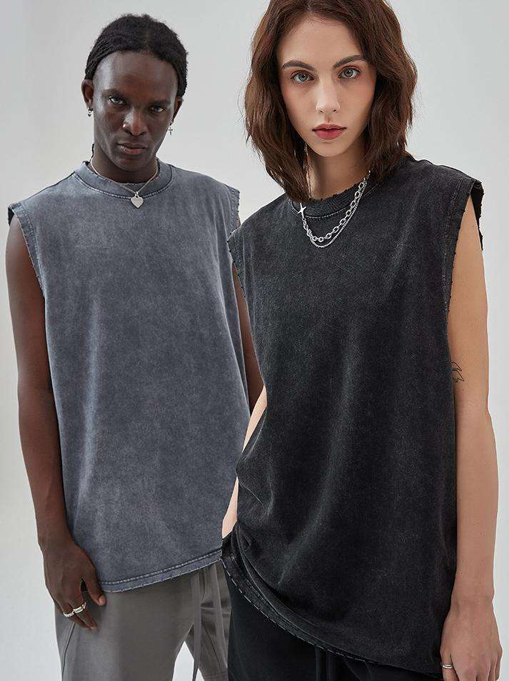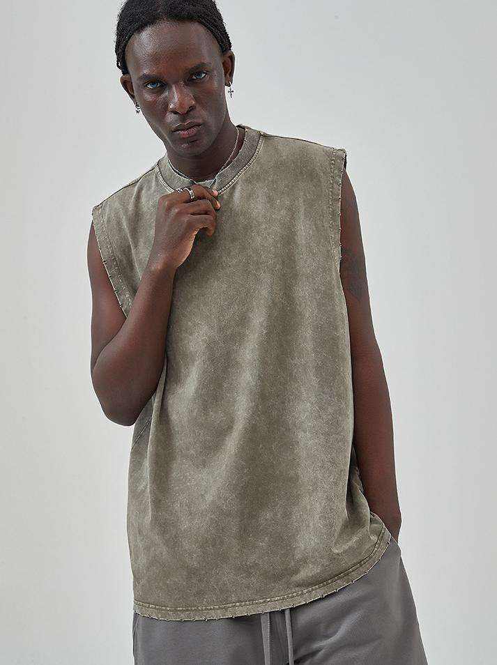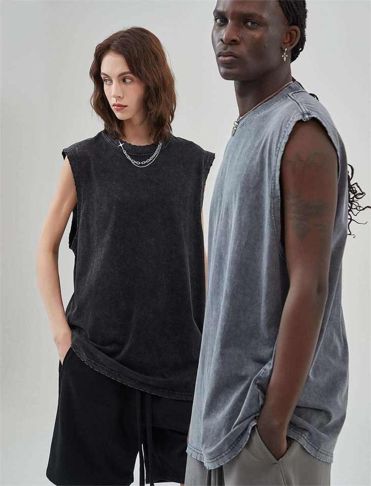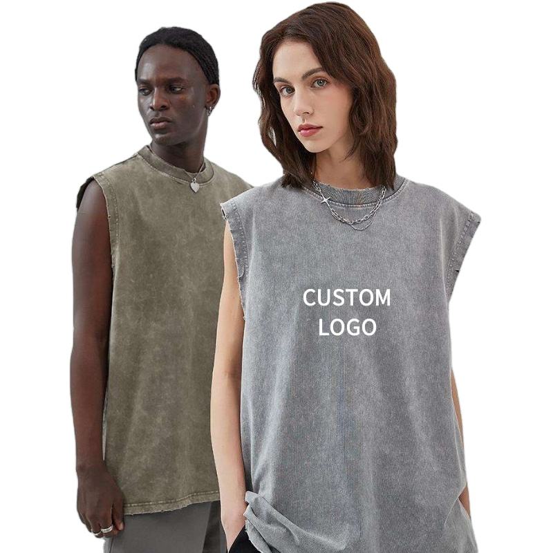 New Arrivals Wholesale 280 Gsm Cotton Vintage Distressed Sleeveless T-shirt Tshirts Oversized Men Washed Vest Tank Tops