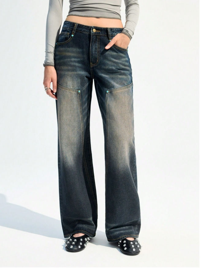 New Arrivals Women Street Wear Wide Leg Denim Pant Low Rise Baggy Jeans for Women