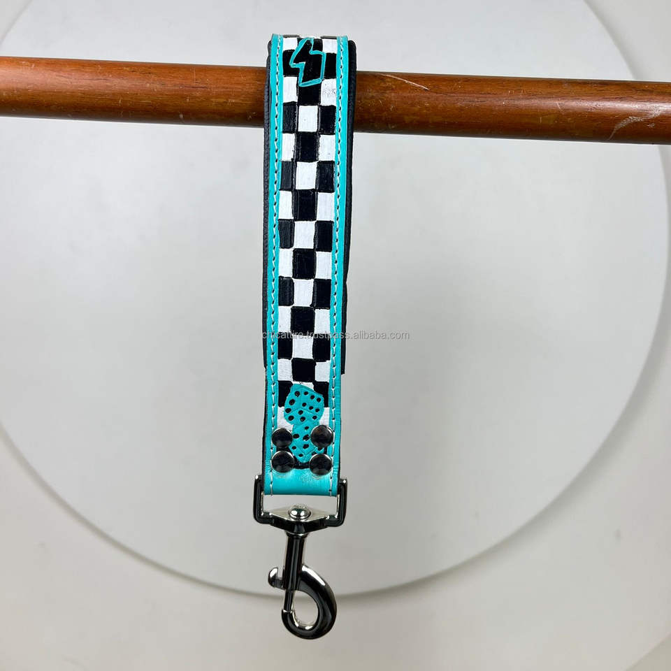 Product name:Hand Tooled Checkered Leather Dog Leash Set