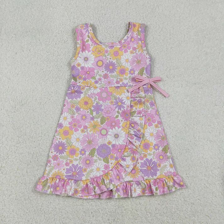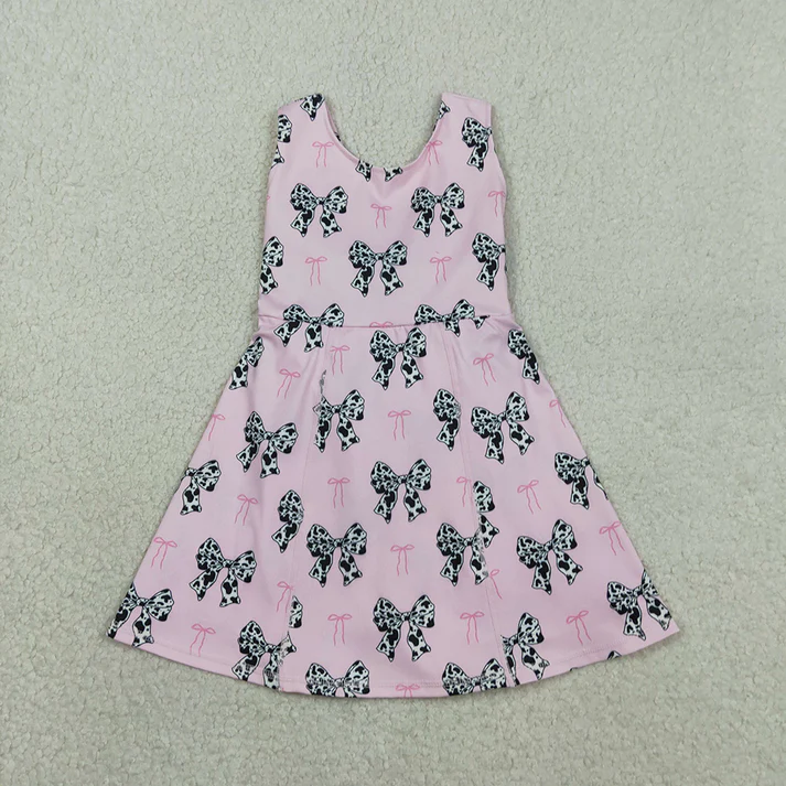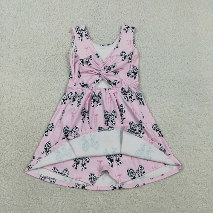 New Arrive Kids Yoga Clothes Bows Pink Print Girls Summer Backless Shorts Knee Length Yoga Dress