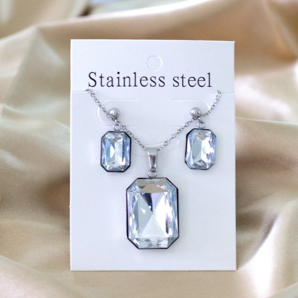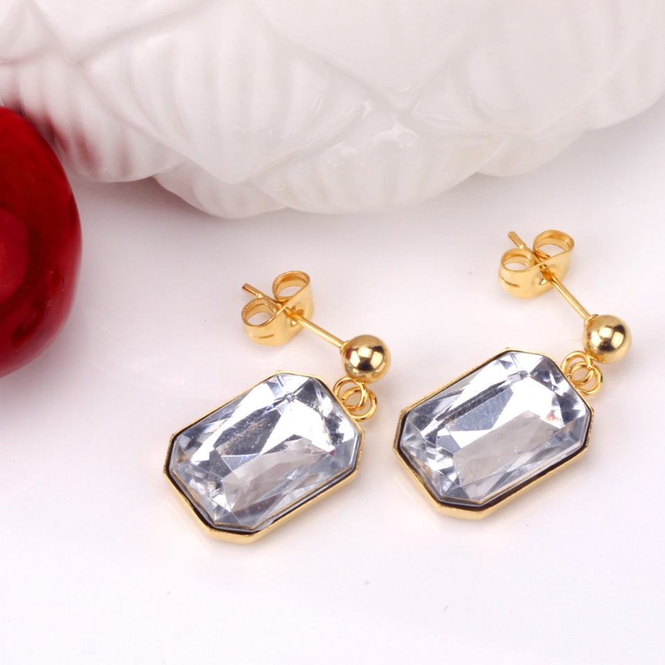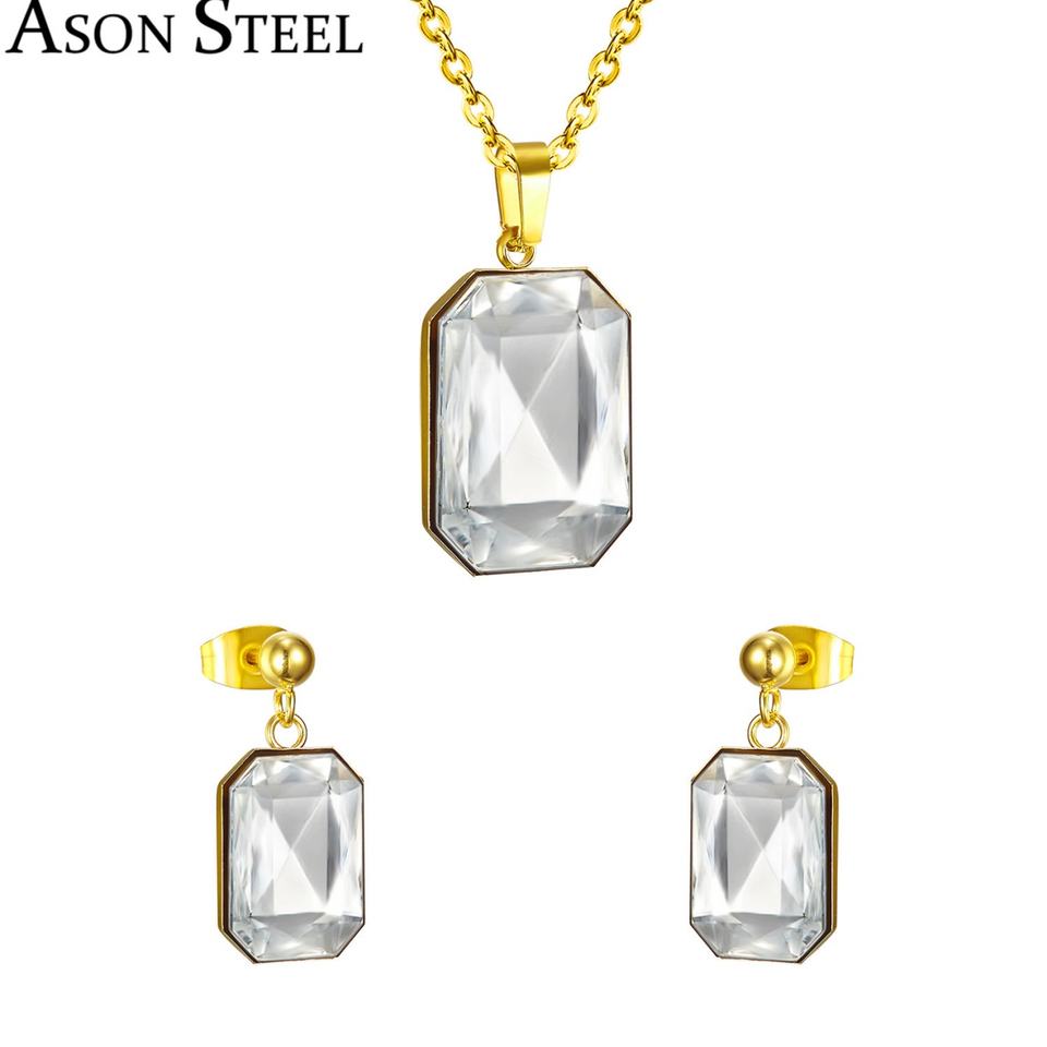 New Arrive Stainless Steel Jewelry Set 18k Gold Plated Jewelry Square Trendy Cute Women Earrings and Necklace Statement Jewelry