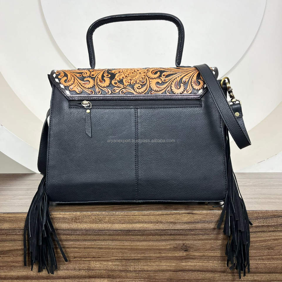 Product name:Hand Tooled Cowhide Leather Fringe Crossbody Bag