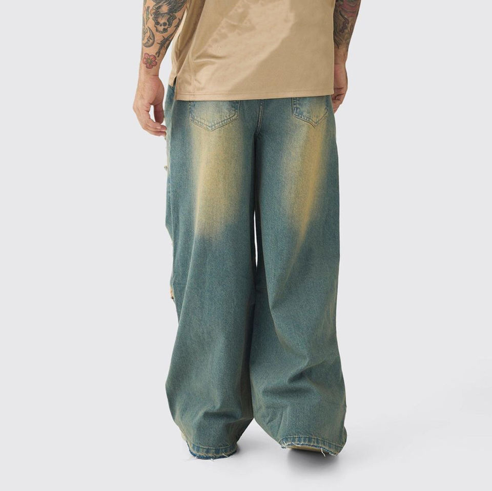 New Arrived 2026 100% Cotton Acid Wash Distressed Vintage Winter Denim Pants for Men with Custom Embroidered Logo Streetwear