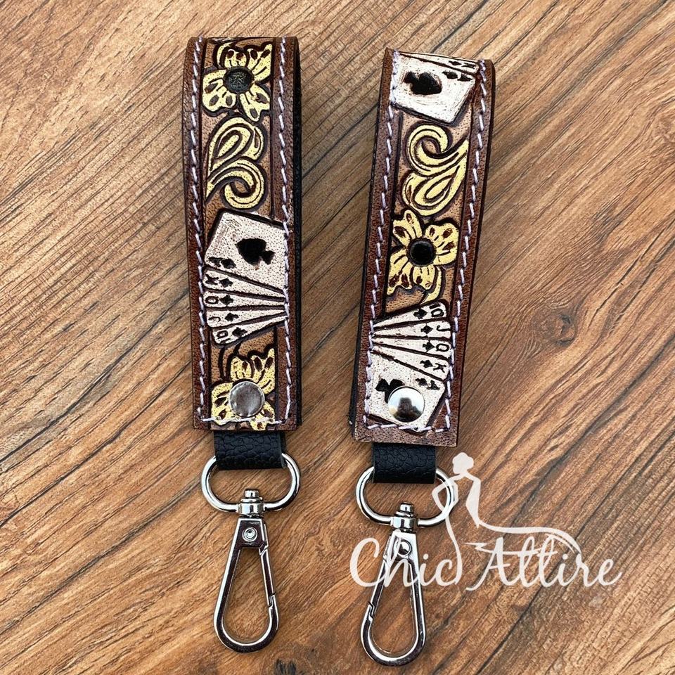 New Arrived Hand Tooled Leather Valet Keychain Women High Quality Genuine Cowhide Leather Key Chain with Belt Loop Clip for Keys