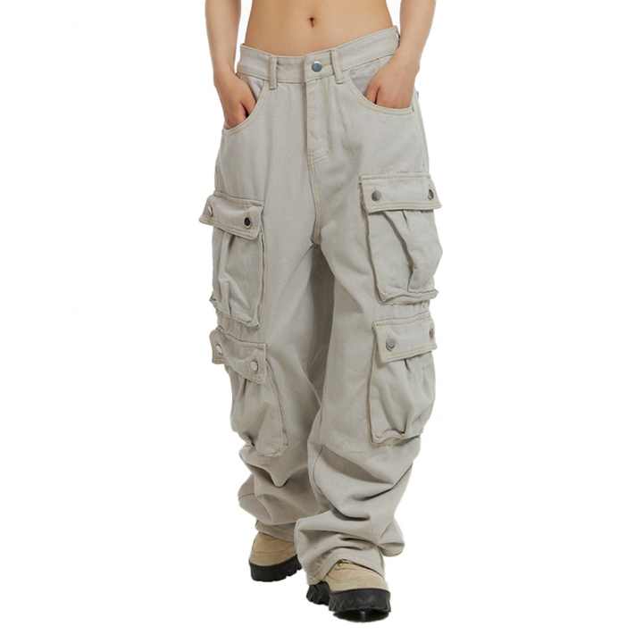 New Arrived Hip Hop Trend Multi-Pockets Casual Sport Trousers Loose White Cargo Pants for Men
