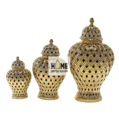 New Arts and Crafts Collection Indian Handmade Metal Gold Color Unique Designer Luxury Ginger Storage Bottles and Jars