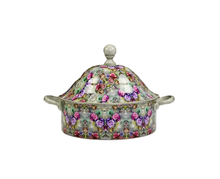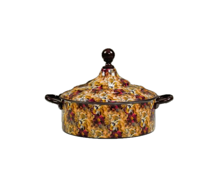 New Attractive Casserole Floral Design Enamel Printed Luxury Hot Pot Casserole Insulated Food Thermal Buffet Serving Hot Pot