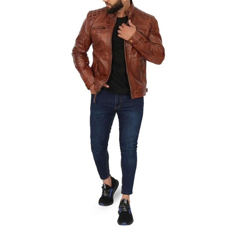 New Autumn Winter 4XL Size Fashion Men's Genuine Leather Motorcycle Jacket Solid Color Zipper Front Waterproof Windproof for Men