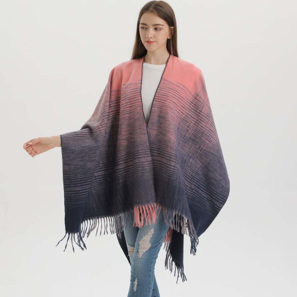 New Autumn Winter Argyle Knitting Split Shawl Reversible Windproof Simple Gradient Cloak Air-Conditioned Room Warm Outdoor